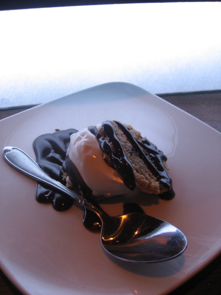 My dessert order was a no-brainer--green tea creme brulee. The tea flavor was not overwhelming, but present. I always enjoy a good creamy creme brulee with a nice crackly crust, and this hit the mark. Matt's ice cream sandwich was fine, but not a stand-out. I'd go with the brulee again next time.